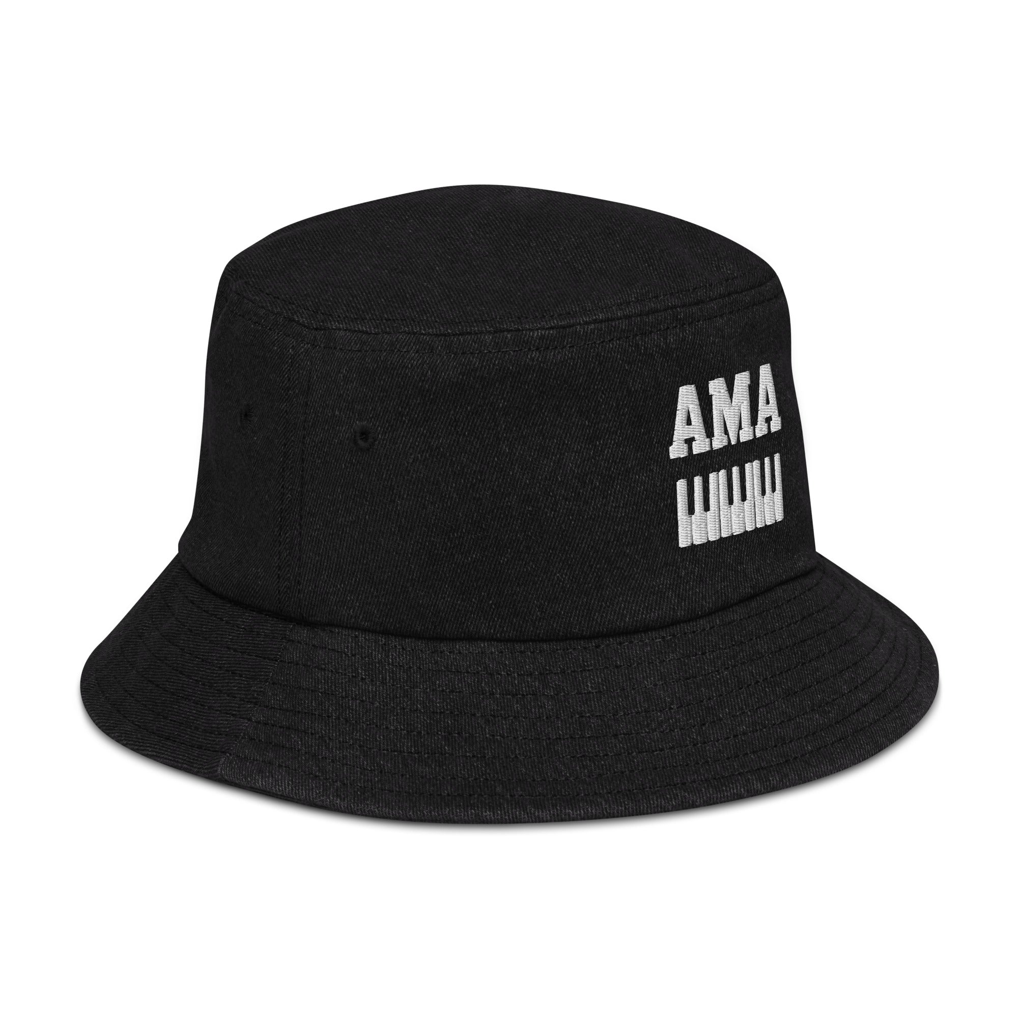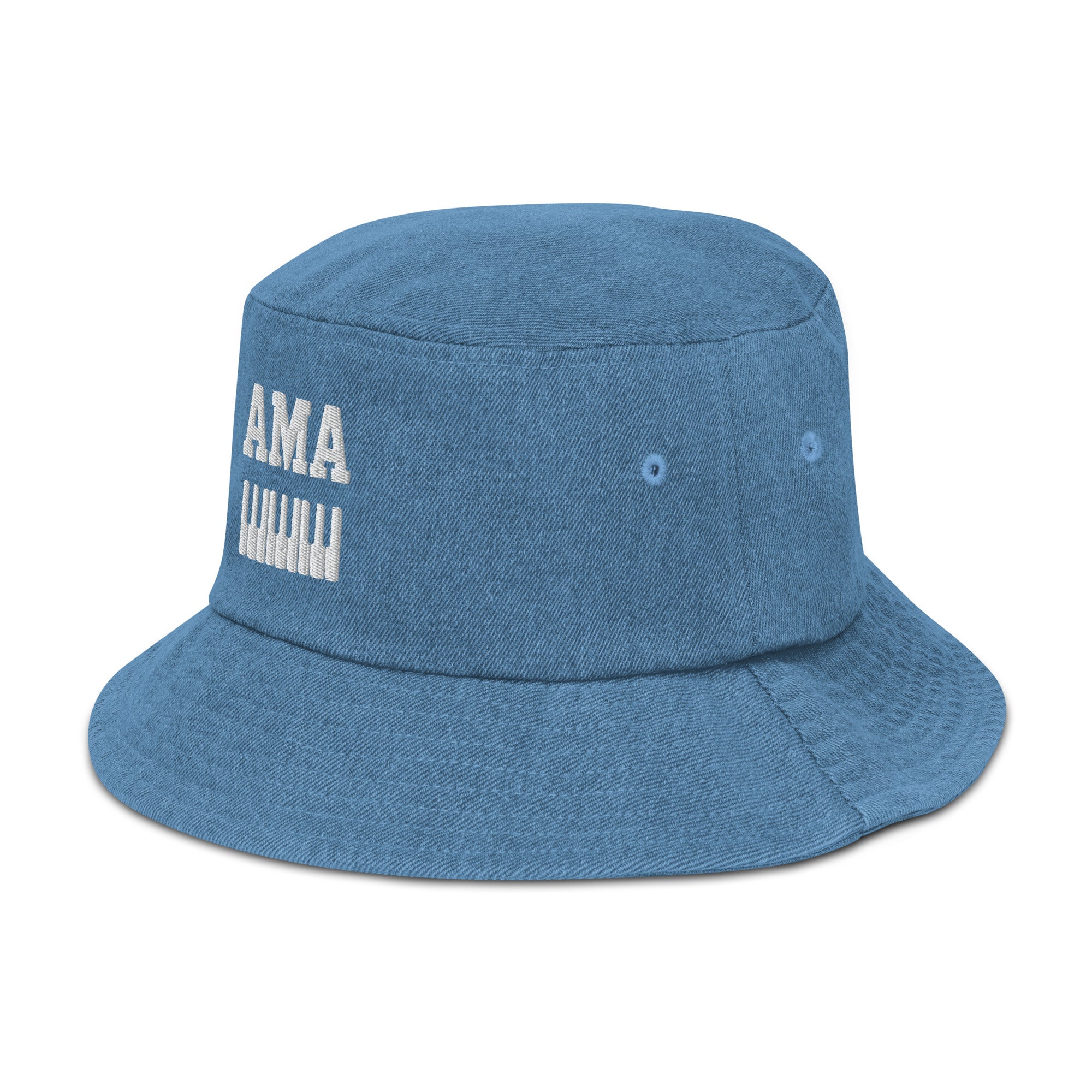Rep the movement in style with the Embroidered Denim AMA Piano Bucket Hat, featuring our iconic AMA lettering with piano keys underneath stitched in bold embroidery. Made from 100% cotton denim, this bucket hat blends timeless streetwear style with cultural identity, making it the perfect finishing touch for any fit.